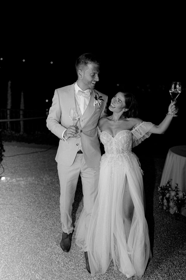 On the wedding day, I focus more on the images than the video. Therefore, some scenes may be out-of-focus or not optimally exposed. Since I want the end result to look cohesive, that's always possible with black and white. At the same time, I love the timelessness and emotionality that B&W films bring.